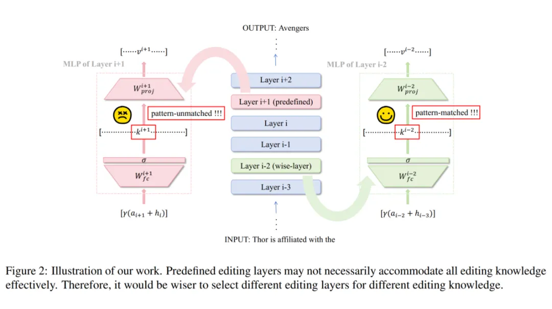 因此本文提出了一个新方法 WilKE,该方法首先找到存储特定知识的层,然后直接修改该层的参数。整体流程如下图所示。具体来说,存储特定知识的层是为该知识产生最大激活强度的层。随后采用 ROME 的方法编辑该层参数。