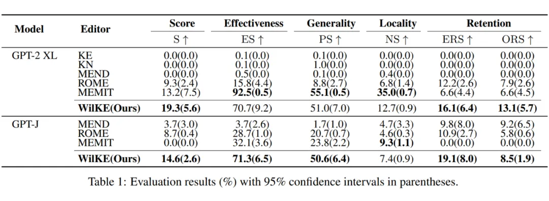 实验结果如下表,与目前流行的大模型知识编辑方法相比,WilKE 在终身编辑中实现了显著的整体性能提升。