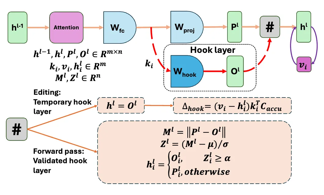 本文提出了 COMEBA-HK, 是一种新型的大模型知识编辑方法,旨在解决大模型更新耗时且资源密集的问题。该方法支持连续和批量知识编辑,且对内存友好,因为它只需要存储几个大小不变的钩子层(Hook Layers)的内存。COMEBA-HK 不需要额外的训练或大型外部存储来存储编辑实例,它通过优化钩子层中的权重来实现模型行为的直接编辑。