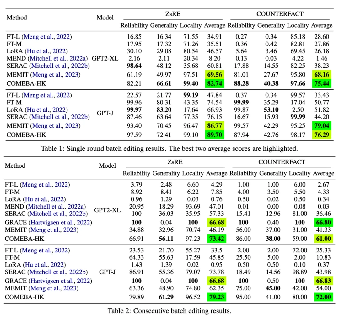 1. 连续和批量支持:COMEBA-HK 能够在一系列连续的步骤中进行批量编辑,而不需要在每个编辑步骤后将模型重置回初始状态。