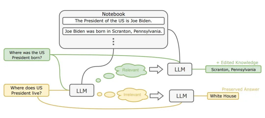 推理阶段利用检索,从存储的数据中检索出相关的 Edit Descriptors,以满足实时、大量的知识编辑请求。这种方法使大模型能够动态地将最新的知识应用到查询中,从而提高大模型知识编辑的速度和稳健性。
