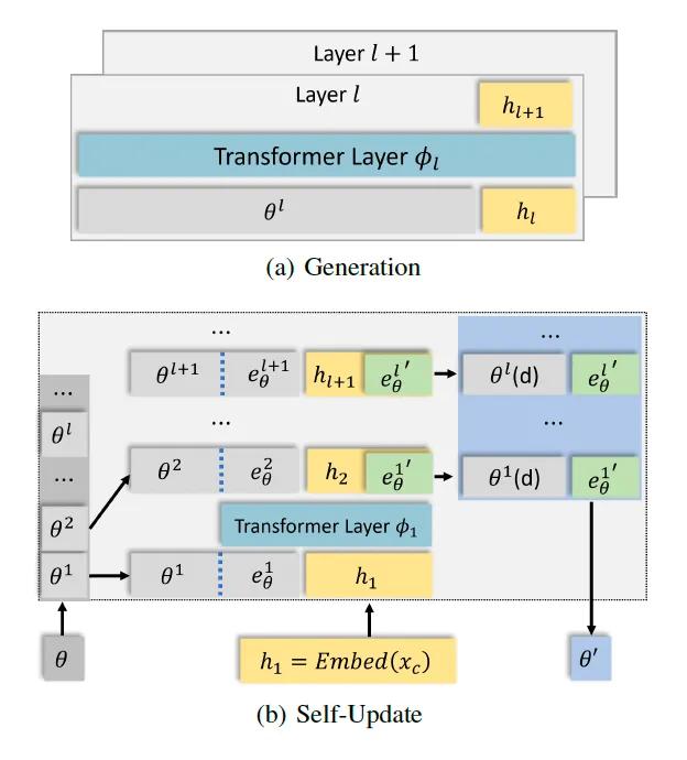 在每一层中,内存池包含代表压缩知识的内存标记。为更新内存池,设立 Self-Update 机制,以将新知识传播到内存的每一层。在 Self-Update 过程中,MEMORYLLM 仅更新每层内存中的一部分以吸收传入的知识,从而确保先前存储的知识逐渐淡出。