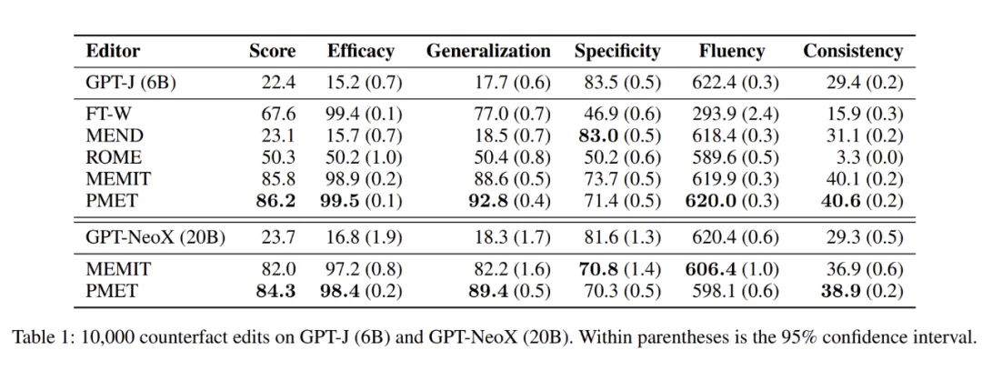 实验结果表明在 zsRE 和 COUNTERFACT 上的实验证明了 PMET 最先进的性能。本文的发现有助于更好地理解 MHSA 和 FFN 所起的作用,促进大模型知识编辑领域的发展。