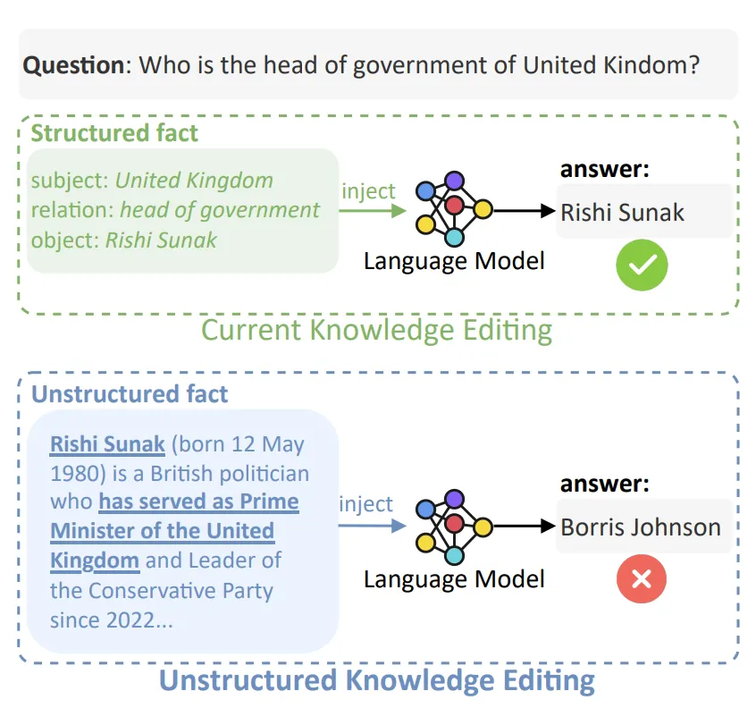 现有的大模型知识编辑仅在结构化数据中的评估表现很好,然而现实中有很多非结构化数据,如新闻文章等。本文提出了一个新的更加实用的大模型无结构化事实知识编辑任务 UKE,将直接使用非结构化的数据评估大模型知识编辑方法的效果,避免了繁琐的结构化事实知识构建以实现高效且响应迅速的知识编辑。