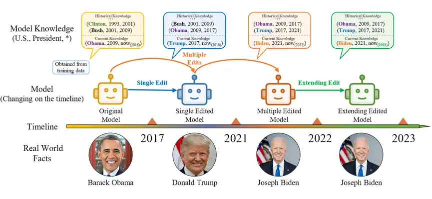 然而,大模型在处理和理解知识方面仍然存在一些挑战和问题,包括知识更新的困难,以及模型中潜在的知识谬误问题。随着模型参数量变大,大模型更新的成本逐渐变得非常高昂,而且更新后的模型鲁棒性难以保障。