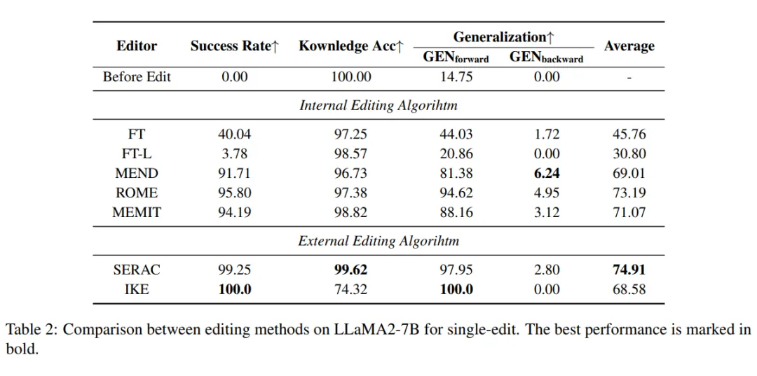 本文在大量方法上实验并展示了 UKE 对已有编辑方法的挑战性。发现在非结构化的数据上目前的编辑方法性能大幅下降,尤其是在真实世界更新的数据上目前的编辑方法性能较差。