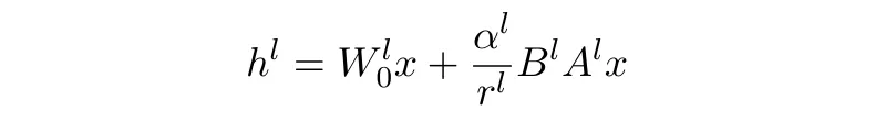 其中参数 α 用于衡量适配器相对于原始网络的权重,r 用于控制更新新知识所需的额外参数数量,这个数量是针对整个数据集中的知识进行泛化的,同时也是特定于每一层的。