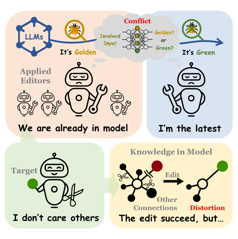 大模型知识编辑方法通常隐含地假设知识在大模型内是本地化和孤立的,这种假设过度简化了模型知识的互连性质。本地化的前提会导致知识编辑不完整,而孤立的假设可能会损害其他知识和一般能力,它给知识编辑方法的性能带来了不稳定。
