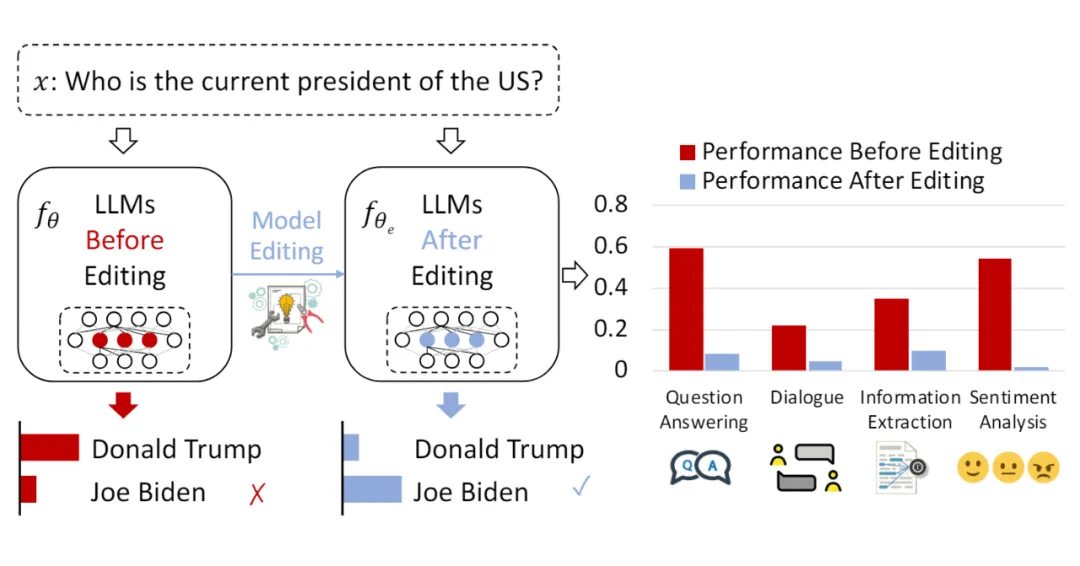 然而,对于大模型知识处理能力的持续提升进而实现 AGI 是学术界和工业界共同的追求。大模型知识编辑技术的突破可以促进大模型新知识、新技能的快速且永久习得,实现神经符号知识互相转换与高效处理,还可以在大模型出现致命错误或安全隐患时基于大模型知识编辑技术及时定位根源并实现快速干预和控制。