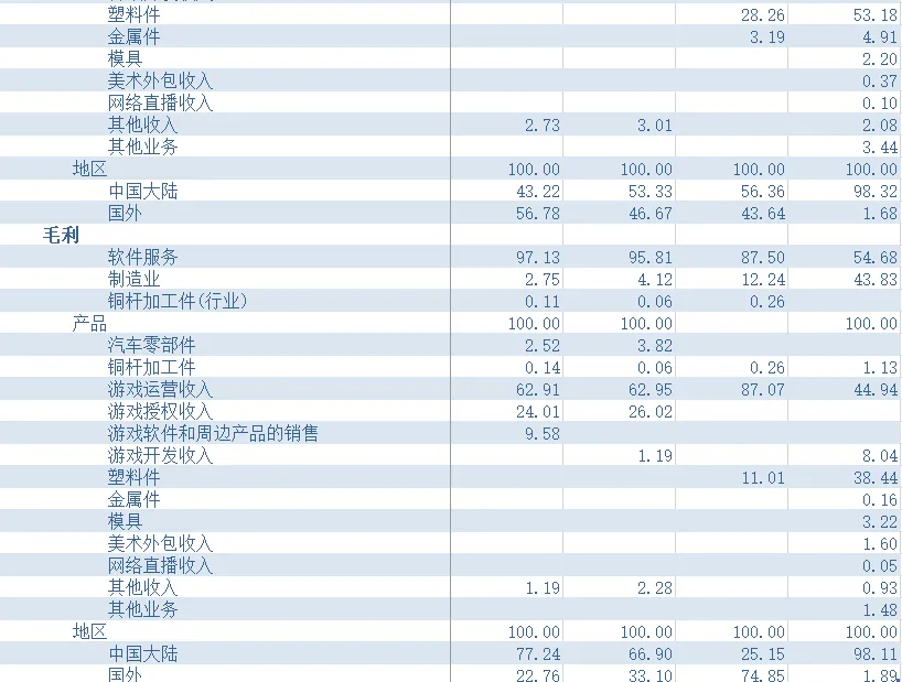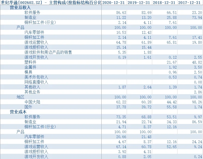 表 以世纪华通为例的主营结构分析