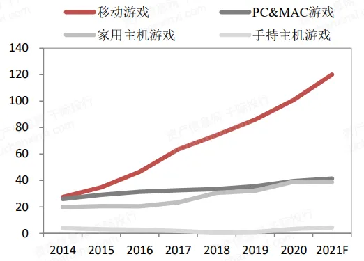 图 2014-2021年全球游戏用户支出情况