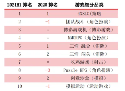 图 2021H1海外用户游戏支出品类排行