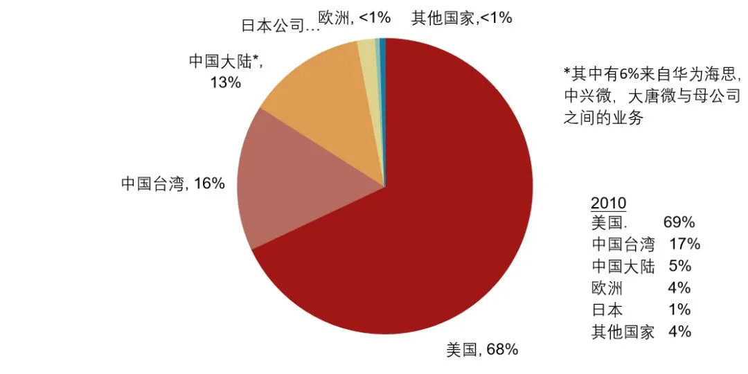 当前国内的AI芯片类公司主要集中在芯片设计环节,而国内的芯片设计行业和国际差距较大。IC insights的数据表明,2017年中国大陆的芯片设计产业市场份额占全球比例只有11%,而其中5%还是海思(华为)、中兴、大唐的内部转移支付。