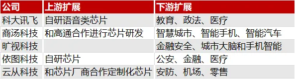 上游的AI芯片类公司技术能力更多在半导体领域,当前也处于初创期,资金需求很大,不具备中游扩展的能力。而技术平台类公司,为了获取更适合自身公司算法技术的芯片,可以通过合作或者自研的方式,进行某些难度较低的专用AI芯片的开发。