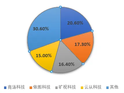 据前文数据,2016年开始人工智能初创企业产生的速度已经大幅降低,而计算机视觉和智能语音类平台公司的市场竞争格局逐步稳固,部分头部企业已经脱颖而出,竞争优势明显。