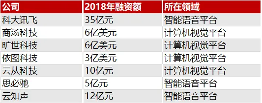 据IDC统计,2017年中国计算机视觉市场份额中,商汤、旷世、依图、云从四家公司已经占据了70%的市场份额;据前瞻产业研究院的统计,2018年我国智能语音市场份额中,科大讯飞占据了44%的市场份额。
