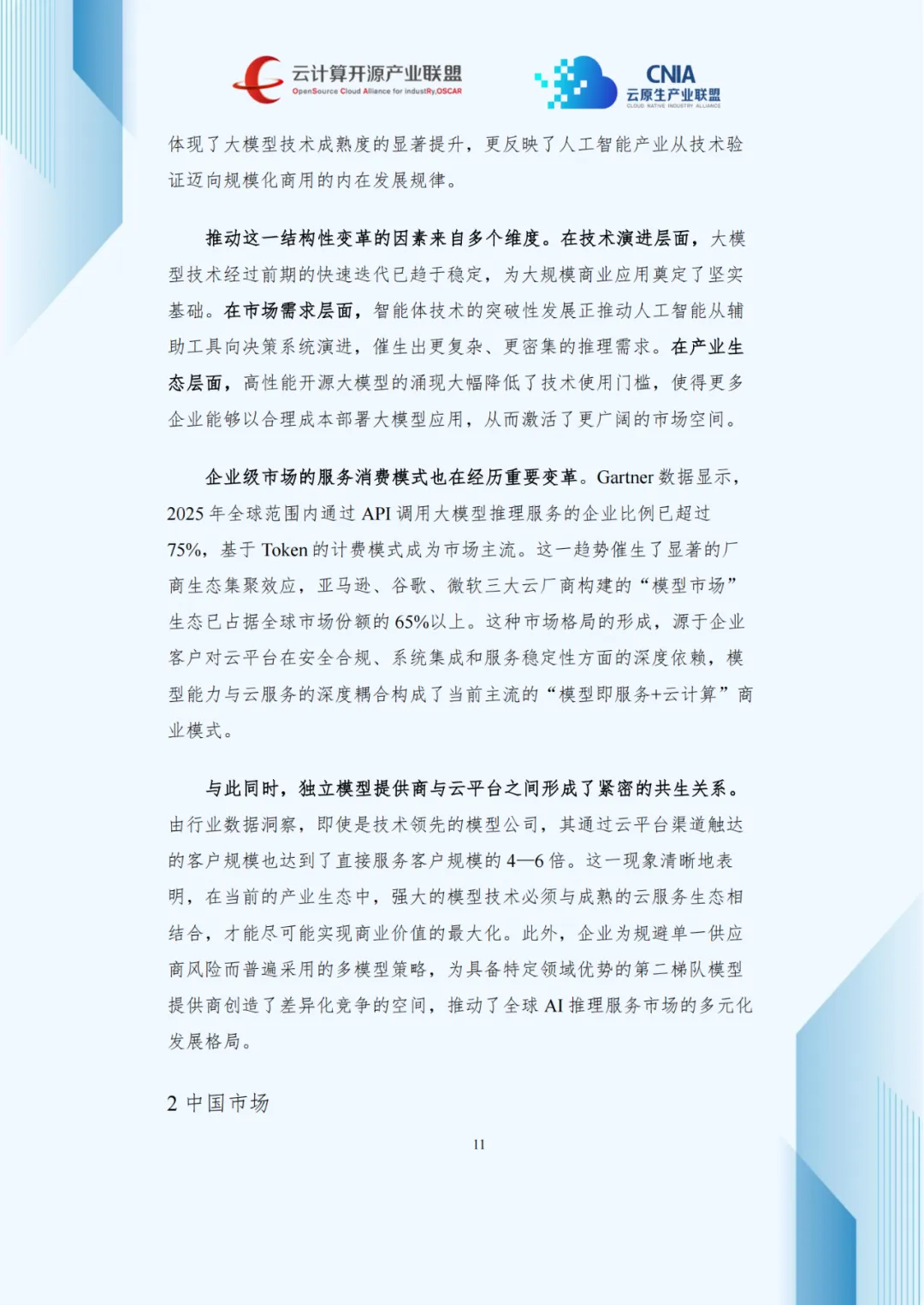 这一转型源于多重因素:大模型技术成熟支撑商用落地,智能体技术催生密集推理需求,开源模型降低使用门槛。Gartner数据显示,2025年全球超75%企业通过API调用推理服务,Token计费成主流。亚马逊、谷歌、微软三大云厂商的“模型市场”生态占据超65%全球份额,形成强集聚效应。