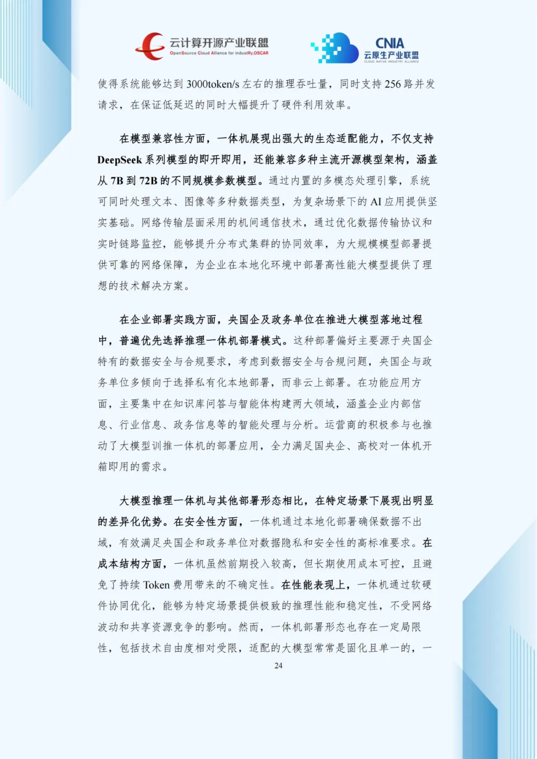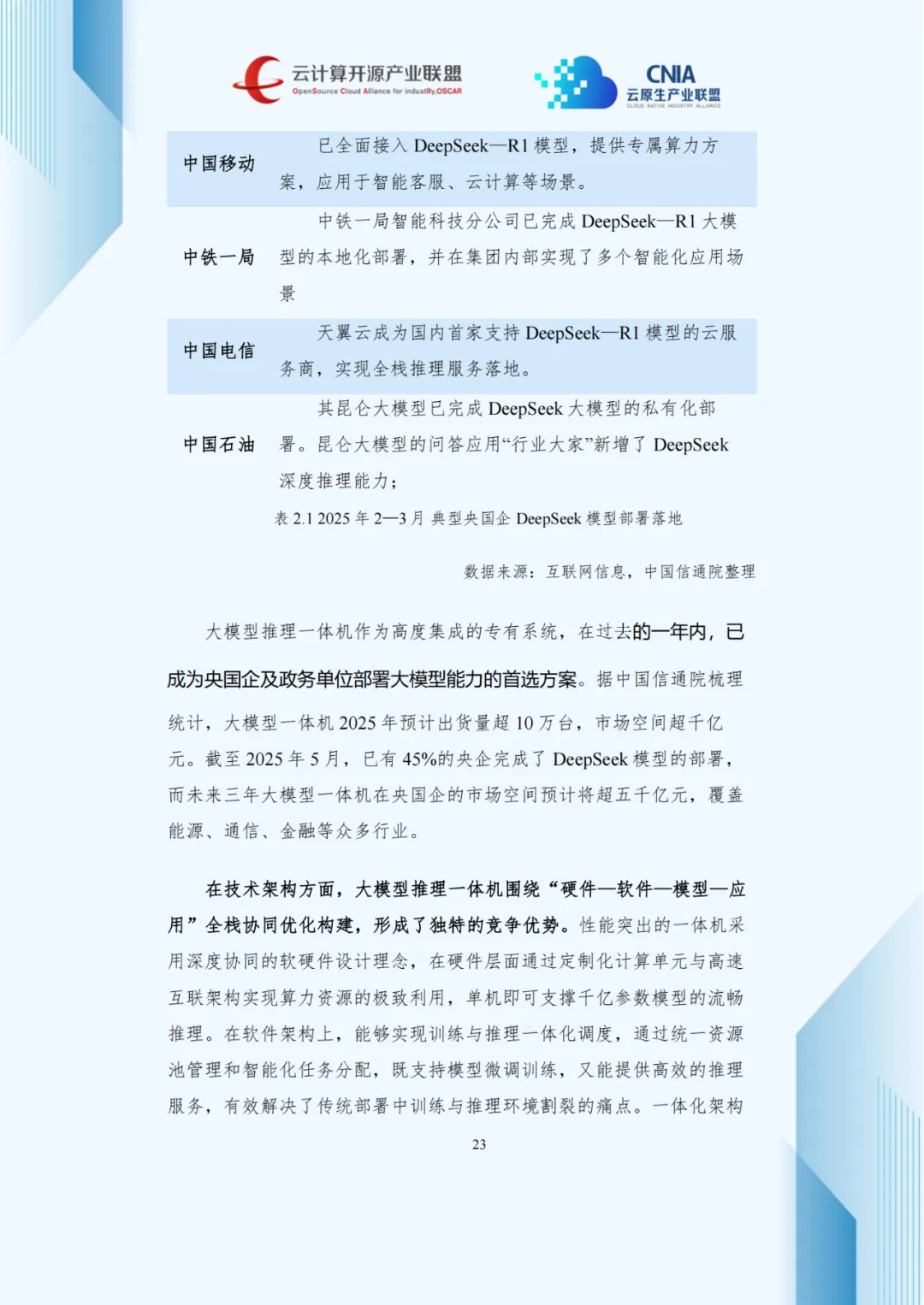 大模型推理一体机以开箱即用、数据不出域特点,受央企和政务单位青睐。截至2025年5月,45%央企完成DeepSeek模型部署,未来三年央企市场空间预计超五千亿元。