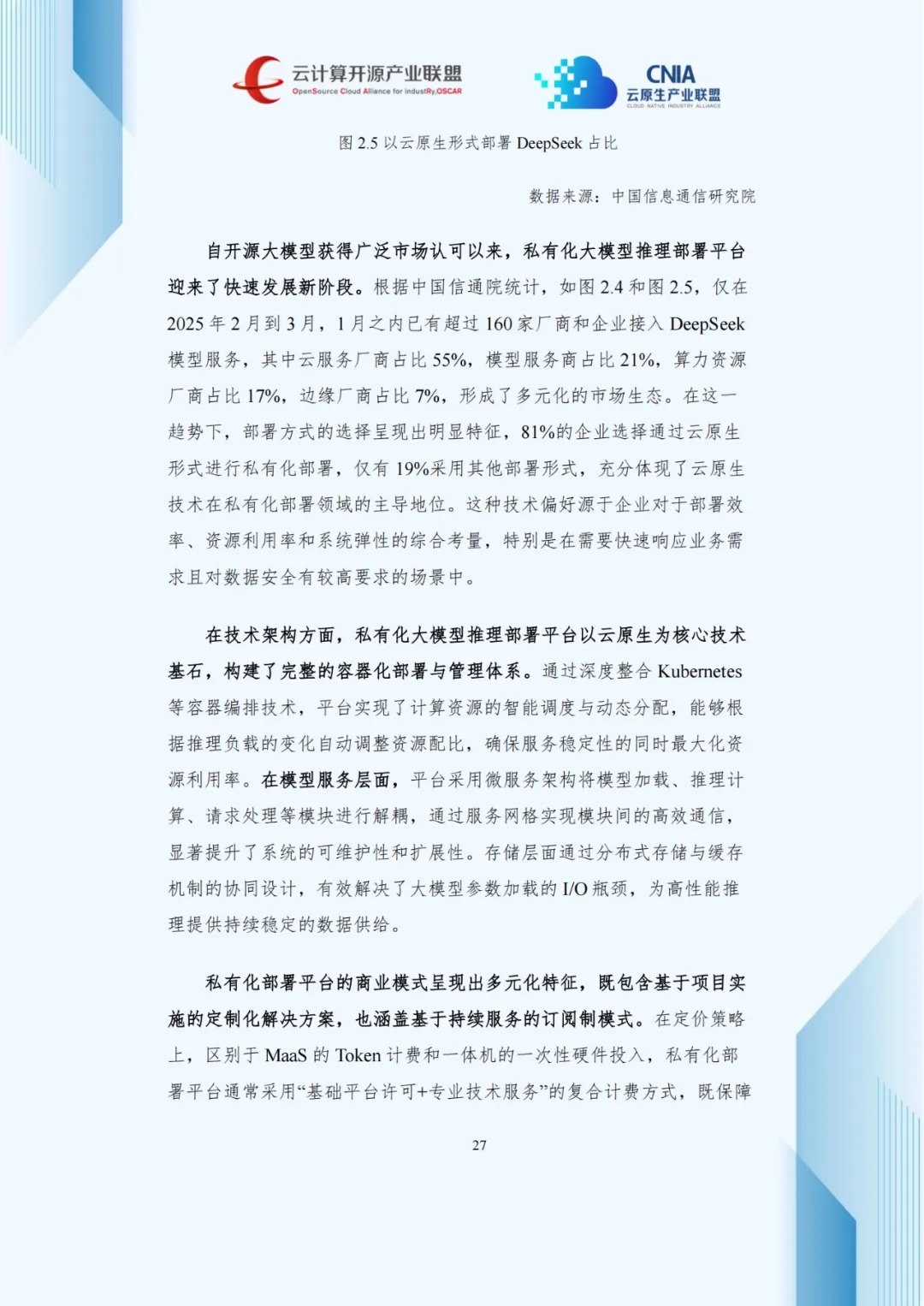 私有化部署平台依托云原生技术,满足企业数据主权与定制化需求,81%企业选择云原生私有化部署,云厂商占比达55%。