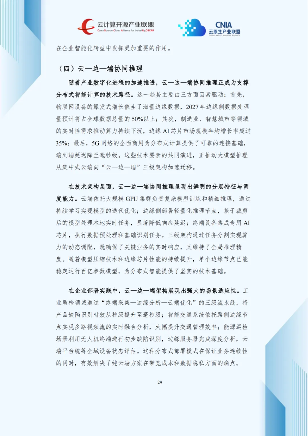 云—边—端协同推理凭借分布式架构适配物联网与实时场景,预计2027年设备端与边缘服务器推理负载占比达84%。