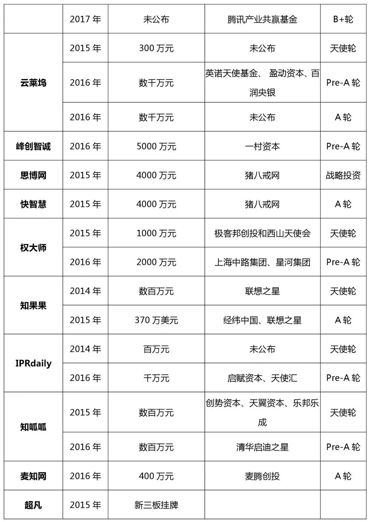 [23]中华网,《知识产权初创企业峰创智诚获5000万融资》,http://news.china.com/finance/11155042/20161116/23890863.html,访问日期2017-4-12