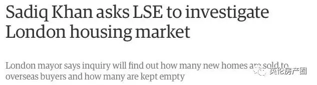 去年, 伦敦市长Sadiq Khan宣布要深入调查海外买家在伦敦房产的投资行为: