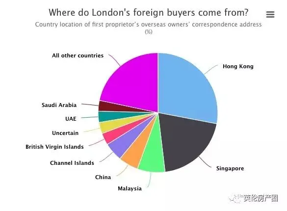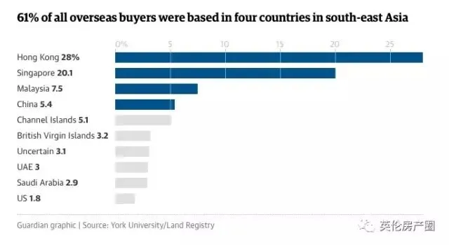 这个数据还是多少让人有些惊讶的:仅仅来自香港和中国大陆的华人投资者就占到了33.4%,毋庸置疑是伦敦房产的最大买家!