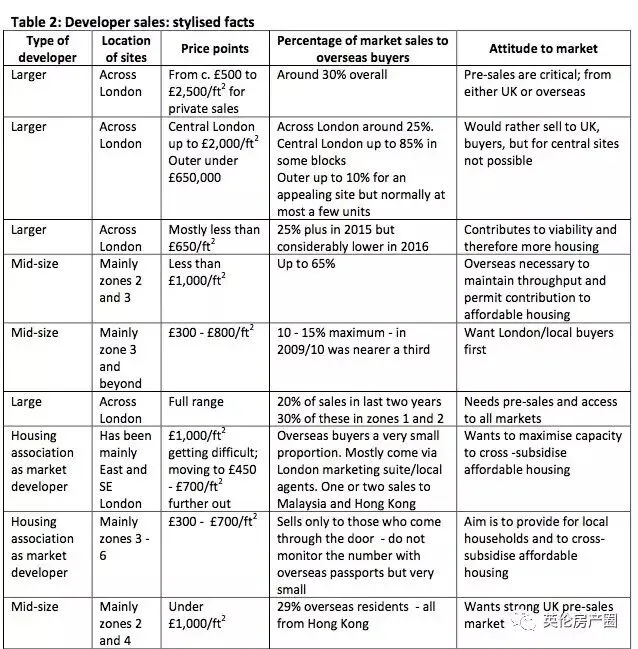 然而,大多数的开发商却表示,他们会在最初以英国市场为主,对于海外市场,他们只会销售一定量的房产或者某种类型的房产(a proportion of schemes, and indeed types of unit)。
