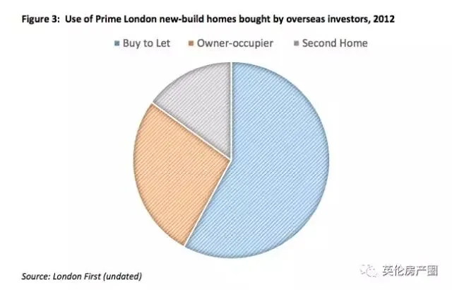 早在2012年,英国London First的数据就显示,海外买家购买英国房产的目的为:购房出租(58%),自住(27%),第二套房(15%)