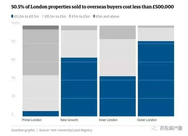 海外买家占比例最大的伦敦地区如下:(数据来源约克大学)