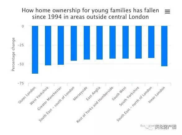 从1994年到2017年,在伦敦的年轻家庭住宅拥有率下降了60%左右。