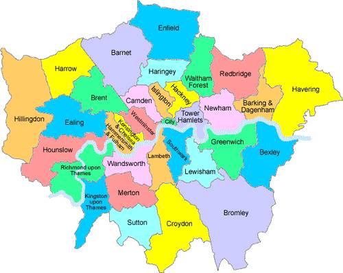 伦敦分区如下: