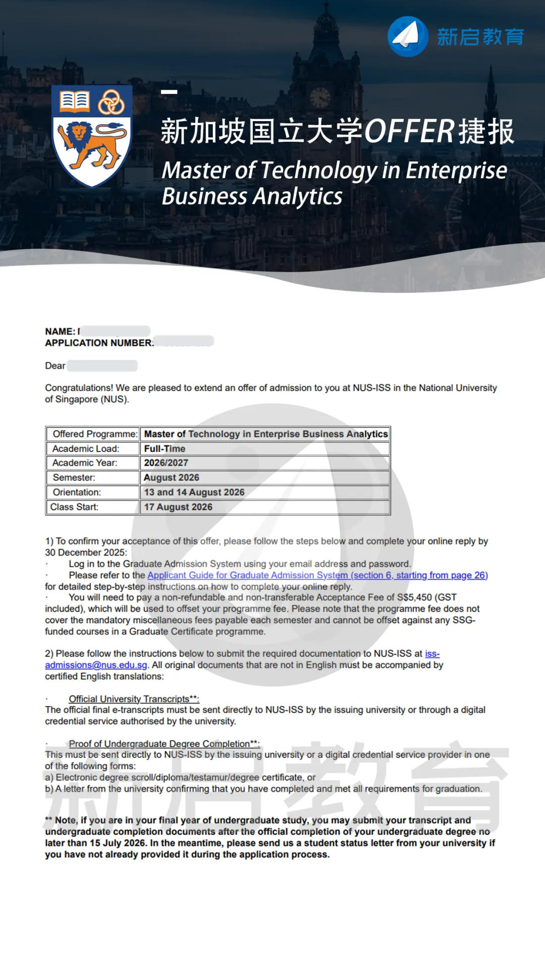 恭喜新启L学员斩获新加坡国立大学offer?: