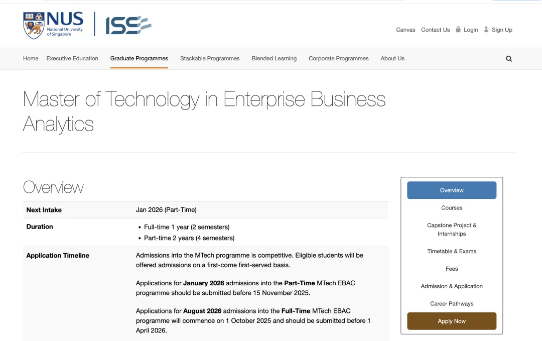 2.能力证明:新加坡境内申请者需参加NUS-ISS入学考试,海外申请者需提交GRE成绩(建议320+3.5,有效期5年);部分优秀本地毕业生可豁免考试与面试;