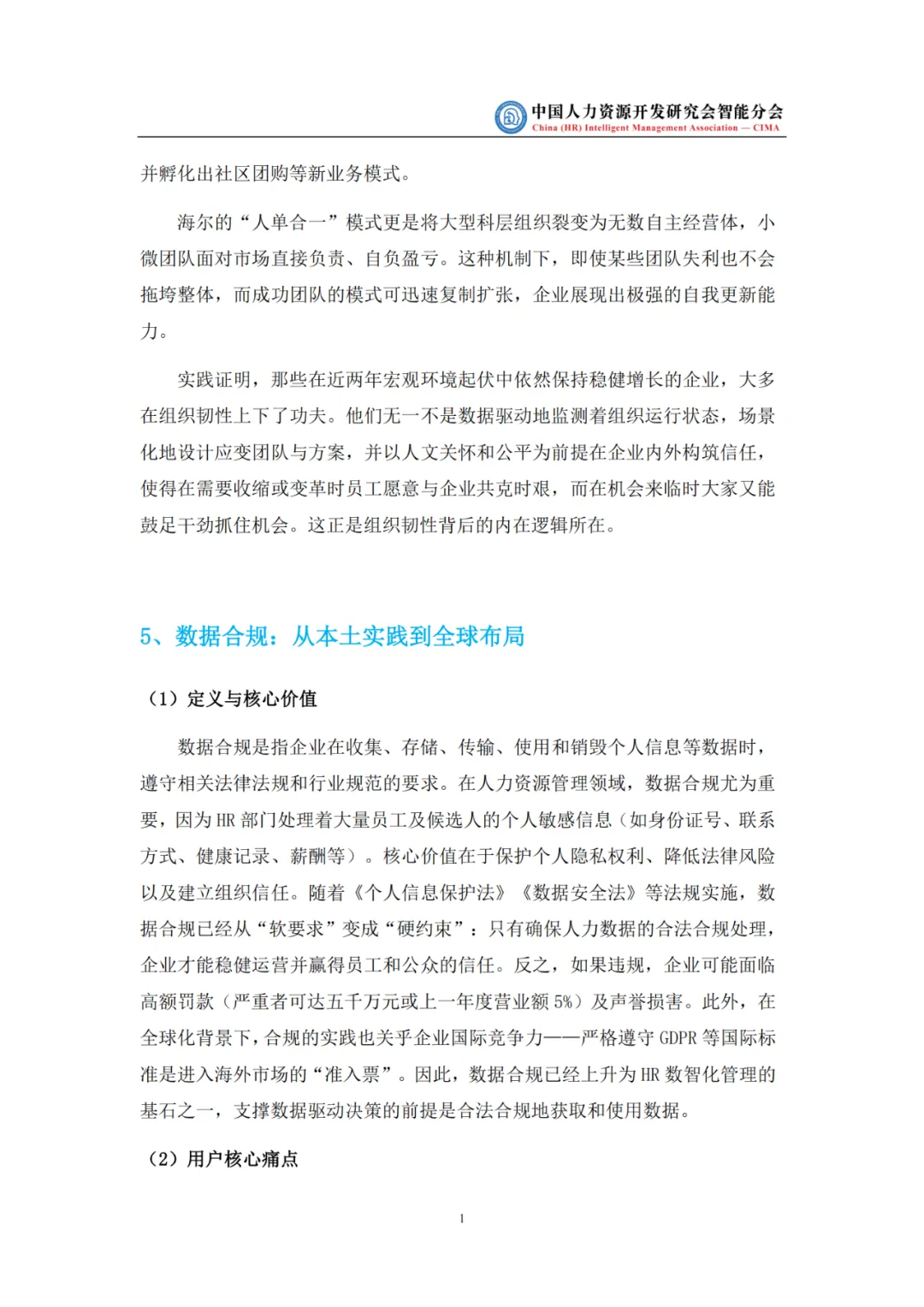 技术的深度渗透,终将撬动组织内核的变革。组织韧性的构建,是为了在不确定性中站稳脚跟;员工体验平台的升级,是从“事务服务”到“情感共鸣”的进阶;数据合规的全球化布局,是跨界经营的必备底线。这些关键词指向同一个终极方向:人力资源管理不再是企业内部的“封闭循环”,而是打通员工、企业、社会的“开放生态”,实现多方价值共生。