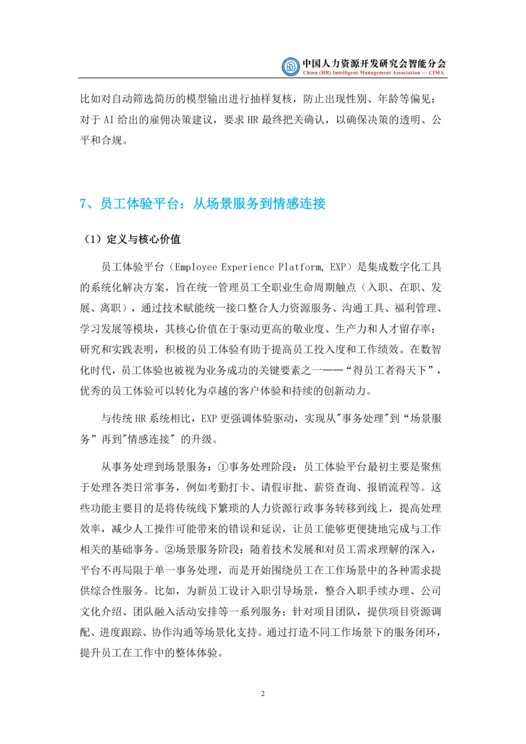 其中,“人智融合”的混合智能决策系统最具挑战性,也最能体现管理的本质。如何在招聘、绩效、组织优化等关键场景中,让AI的理性分析与人类的感性判断、经验洞察形成互补,既规避AI的算法偏见,又弥补人类的决策盲区,这不仅是技术难题,更是关乎管理哲学与伦理边界的深层命题。