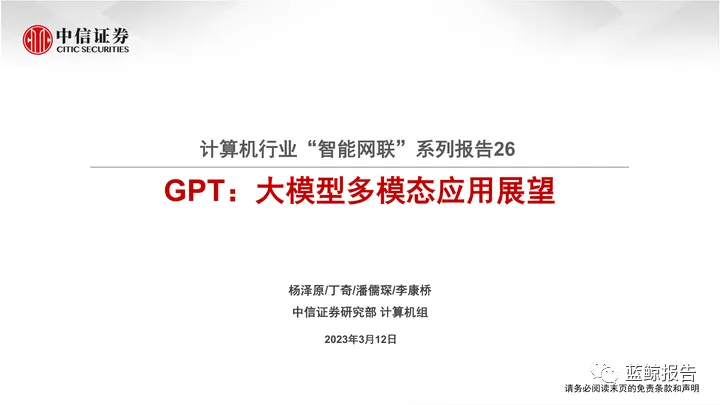 中信证券-计算机行业“智能网联”系列报告26:GPT,大模型多模态应用展望.pdf