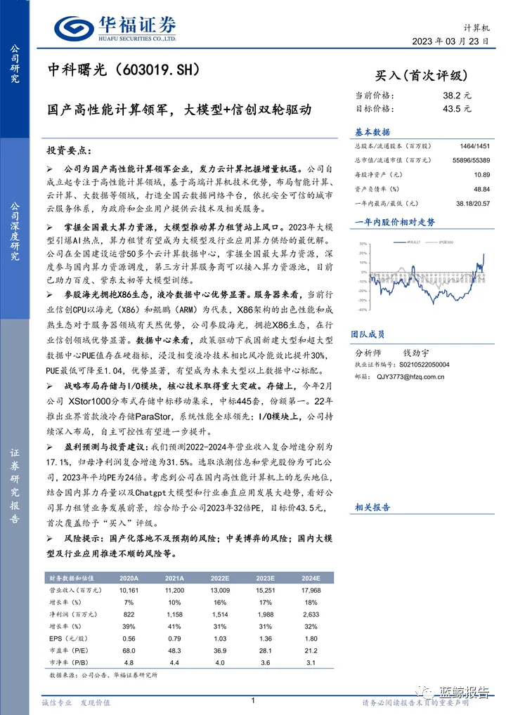 华福证券-中科曙光-603019-国产高性能计算领军,大模型+信创双轮驱动.pdf