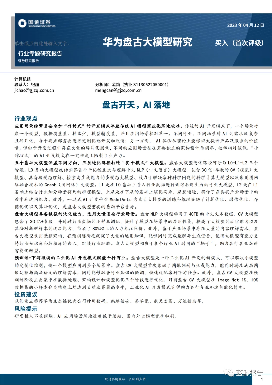 国泰君安-计算机行业:AI大模型赋能千行百业.pdf