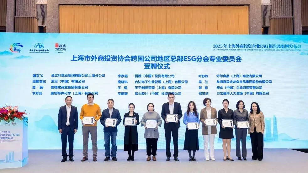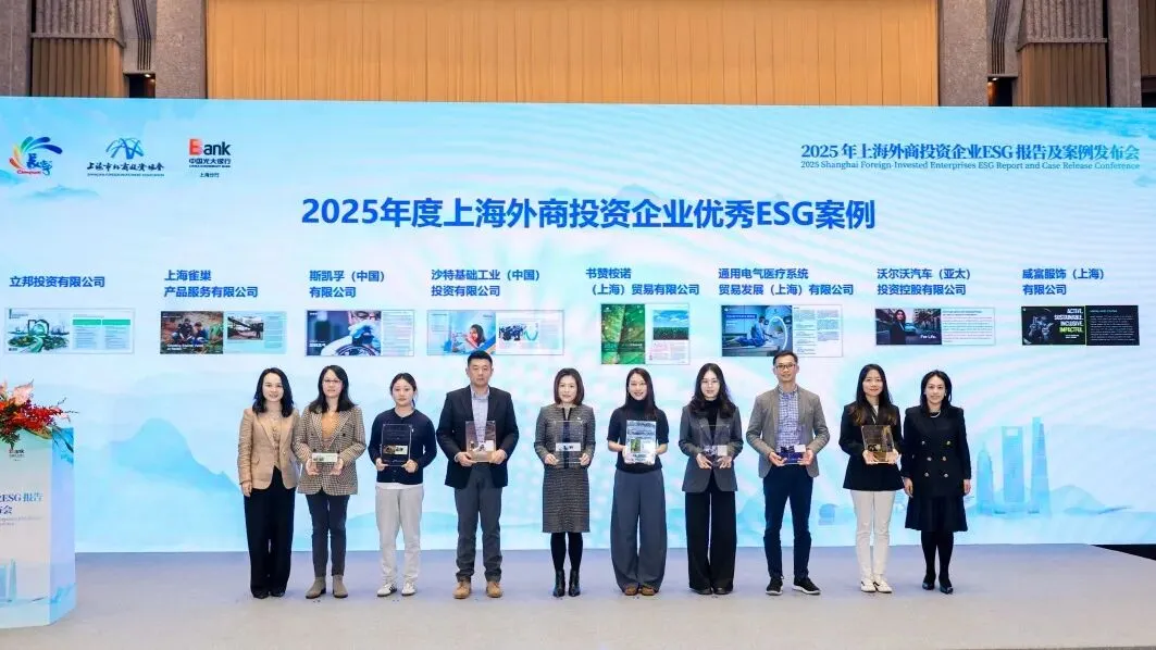 2024年,协会首次发布“上海跨国公司地区总部优秀ESG报告”;今年8月,协会面向在沪外资企业公开征集2024-2025年度发布的中国区ESG报告,以及全球总部发布的可持续相关报告中的在华ESG案例。经过前期的征集、筛选和评估,2025年度上海外商投资企业优秀ESG报告及案例在会上揭晓。