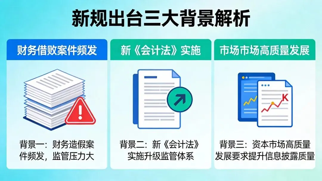 新规的出台并非偶然,而是基于当前财务监管形势、法律体系升级与资本市场发展需求的多重考量,具体可归结为三大背景: