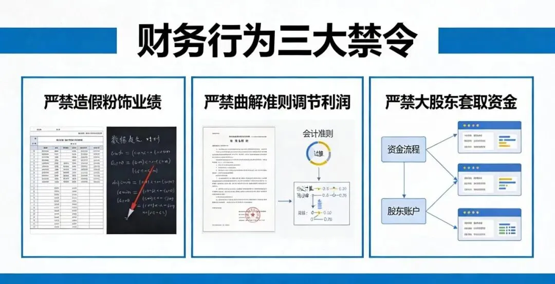 新规设立“三大禁令”,为企业财务行为划定不可逾越的红线,直指财务造假核心痛点: