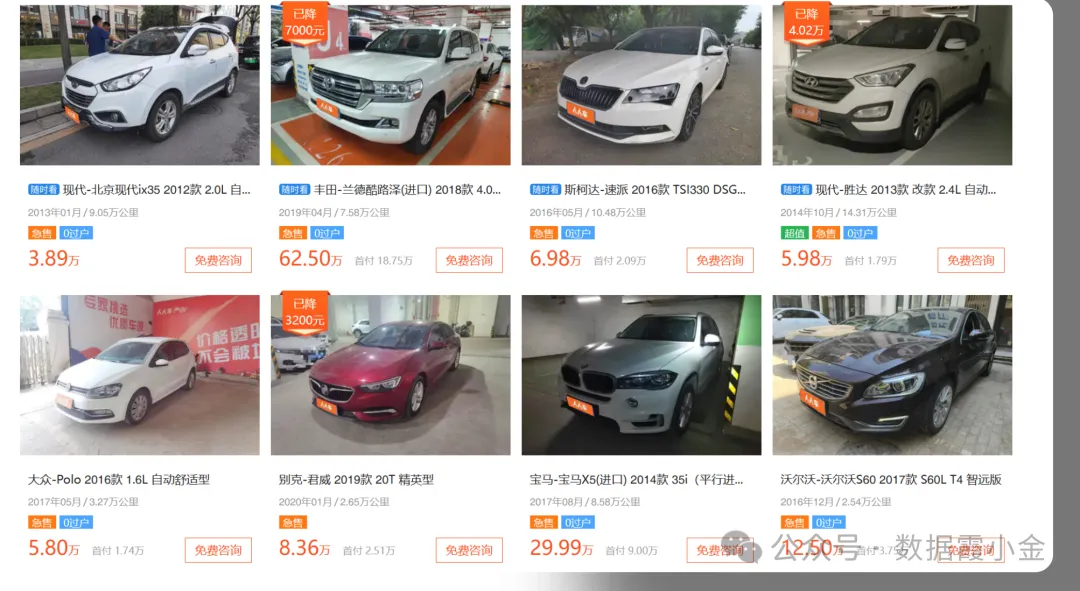 import scrapyfrom json import loadsfrom lxml import etreefrom time import sleepclass CarSpider(scrapy.Spider):name = "car"allowed_domains = ["www.renrenche.com"]# start_urls should be a list, not a string.start_urls = ["https://www.renrenche.com/bj/ershouche/"]# The method name is incorrect. It should be `start_requests`, not `start_request`.def start_requests(self): # Correct method name# Since you are making a GET request, you don't need FormRequest which is typically used for POST requests.# Just use scrapy.Request for GET requests.# If you need to pass arguments like 'city', you should append them to the URL or use the `params` argument if using Session or similar (not directly applicable here).for i in range(50):yield scrapy.Request(url=self.start_urls[0]+f'pn{i}',callback=self.parse) # Corrected to scrapy.Request and fixed url referencedef parse(self, response):sleep(5)html =etree.HTML(response.text)data = {}brand = html.xpath("//div[@class='info--desc']/h2/span/font/text()")if brand:data['brand'] = set(brand)tags = html.xpath("//div[@class='info--desc']/h2/span/text()")tag_list = []if tags:for tag in tags:tag_list.append(tag.split())data['tag'] = tag_listprice = html.xpath("//div[@class='info--price']/b/text()")if price:data['price'] = set(price)