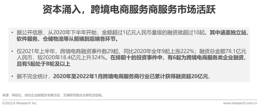 一直以来,跨境电商服务行业受到资本的广泛关注,随着跨境电商行业从野蛮生长时期过渡为理性繁荣时期,近年来企业成本结构变动,合规化趋势等一系列因素也推动行业的供需关系发生了变化。
