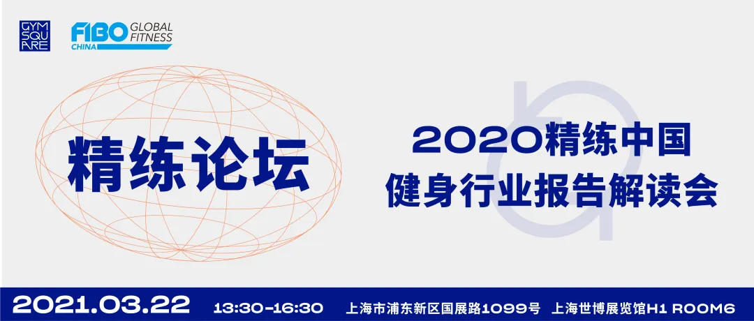精练GymSquare将于2021年3月22日,联合FIBO CHINA 在上海举办「2021 精练GymSquare × FIBO中国健身行业趋势论坛」,重点解读《精练GYMSQUARE 2020中国健身行业报告》以及探讨2021年中国健身行业的新趋势。