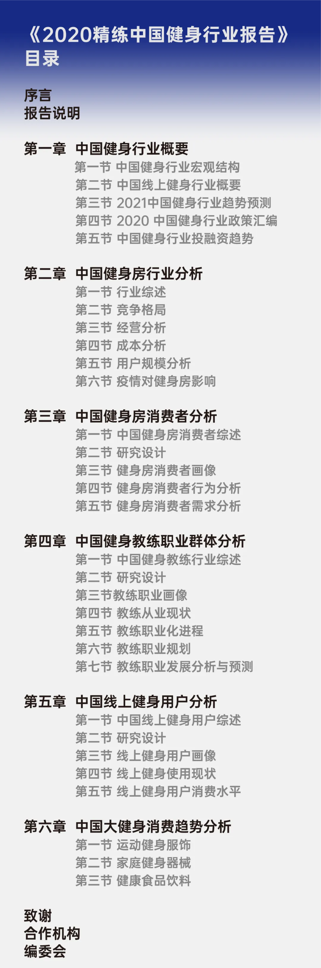 《2020中国健身行业报告》由GYMSQUARE精练研究院统筹全行业的一线数据,调研和撰写。调研成果来自数万问卷样本、近百份数据资料和访谈对象,近百家数据合作健身单位,内容涵盖健身行业、健身教练和健身消费人群,以及运动健身消费趋势。调研采取定量为主,结合定型分析的研究方法,力求最大程度保证研究的科学性。目前问卷总体样本量在两万以上,各方搜集的有效数据数十万。