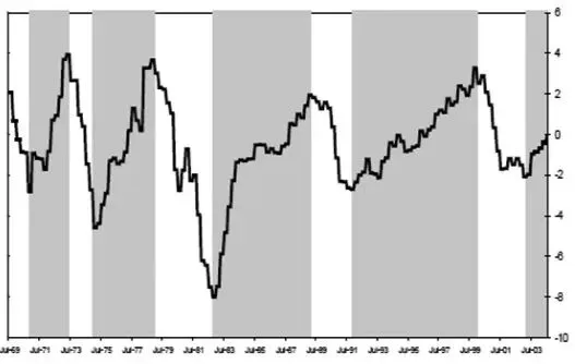 美林证券使用经合组织(OECD)对产出缺口的季度估测数据,识别出美国产出缺口周期的主要拐点,同时采用美国供应管理协会提供的制造业信心调查来确切查明在一个季度中哪一个月是拐点。