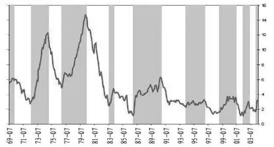 滞涨阶段:GDP增长率降到潜能之下,但通胀继续上升,通常这种情况部分原因归于石油危机;企业为了保持利润而提高产品价格,导致工资—价格螺旋上涨,只有失业率大幅上升才能打破僵局;只有等通胀过了顶峰,中央银行才能有所作为,这就限制了债券市场的回暖步伐;企业盈利恶化,股票表现糟糕,持有现金是最佳选择。