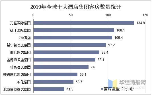 截至2019年12月31日,万豪国际集团客房数量以134.9万间位于全球第一位,前次为锦江国际集团,客房数量为108.1万间。