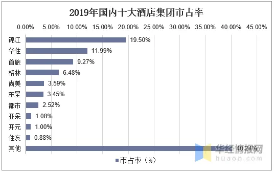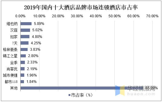 2019年国内十大酒店品牌市场连锁酒店市占率